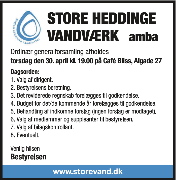 Generelle spørgsmål i forbindelse med ejendomshandel i Store Heddinge Vandværks forsyningsområde.